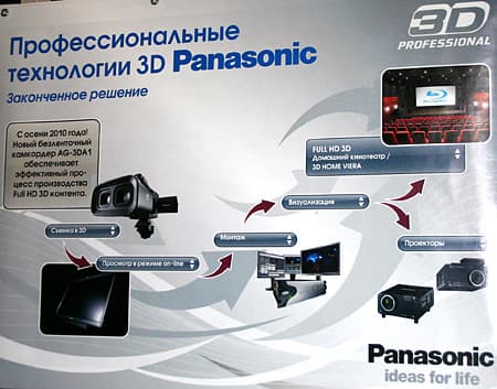 В отдельном закутке демонстрировались профессиональная видео техника Panasonic, в том числе и решения для создания стереоскопического видео: