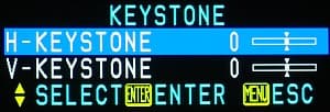 Меню корректировки вертикальных и горизонтальных трапецеидальных искажений (±30 градусов) вызывается или через главное меню, или кнопкой KEYSTONE на пульте.