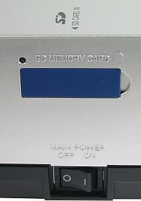 Проектор оборудован слотом для карт памяти SD. В наличии три режима использования содержимого карты: просмотр картинок, запуск слайд-шоу и просмотр фильмов MPEG-4. Требования, накладываемые на файловую структуру, имена файлов и каталогов, типа поддерживаемых файлов (для картинок — JPG с Exif 2.2, для фильмов — только ASF-формат) очень строгие. Все эти возможности по использованию карт SD выпали из нашего исследования, так как мы считаем из определенно минорными по сравнению с кинотеатральным предназначением проектора, поэтому как это все работает сказать не можем.