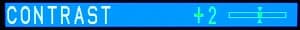 Положение бегунка, соответствующее значению параметра по умолчанию, помечается треугольничками, а когда параметр принимает это значение, то число и полоска с бегунком становятся белыми (в противном случае они зеленые). Нажатие на кнопку NORMAL на пульте позволяет сбросить все параметры на текущей странице меню или, в процессе настройки параметра, вернуть только его значение к фабричному по умолчанию. Меню нерусифицировано, всегда полупрозрачное и располагается по центру экрана.