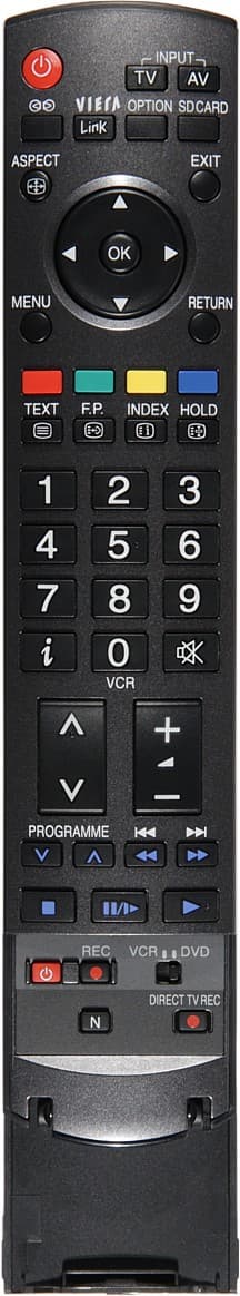 Panasonic — одна из немногих компаний, очень ответственно подходящих к проектированию пультов к своим устройствам. В данном случае скажем ей спасибо за эргономичную форму пульта, очень крупные цифровые кнопки и две самые главные кнопки-качалки, удобную четырехпозиционную навигационную кнопку с кнопкой OK в центре, а также за достаточно крупные и контрастные подписи к кнопкам.