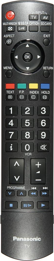 Крышечка прикрывает редко используемые кнопки, случайное нажатие на которые может привести к нежелательным последствиям. С помощью пульта можно управлять техникой от Panasonic — видеомагнитофоном, DVD-плеером и т.д. Перенастроить пульт на технику другого производителя, к сожалению, нельзя.