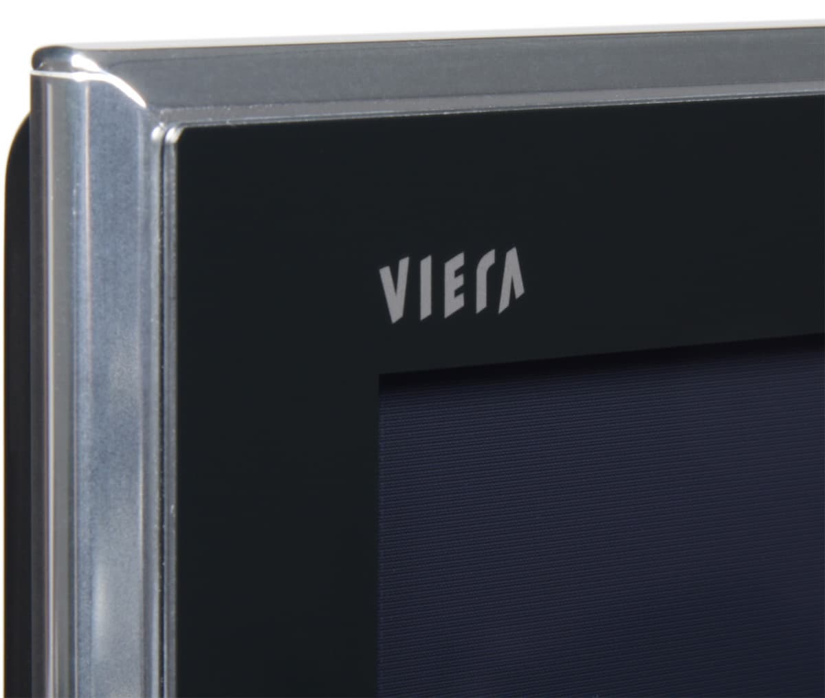 Передняя панель представляет собой монолитную стеклянную пластину, обладающую хорошими антибликовыми свойствами. Она устойчива к появлению царапин и с нее легко удаляются следы от пальцев. Сама плазменная панель расположена за фронтальным стеклом, но определить это сложно, так как зазор между ними минимальный и изображение не двоится ни при каком условии. Поверхность экрана при обычном освещении средней интенсивности выглядит практически черной и только при ярком свете спереди (как обычно бывает при фотографировании) экран немного высветляется, но близкий к нейтрально-серому оттенок тона сохраняется. К сожалению, напрямую сравнить с представителем серии VT 2011 года мы не можем, но, скорее всего в серии VT50 экран чернее и отражает меньше фронтального света. По внешнему краю передняя панель обрамлена алюминиевым профилем.