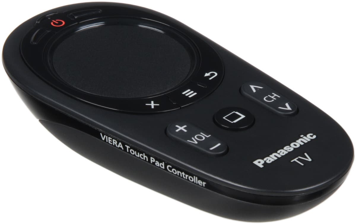 Гибридный, так как основная его функциональность обеспечивается технологией Bluetooth, но команды на включение и выключение телевизора передаются по ИК-каналу. Этот пульт предназначен в основном для использования совместно с сетевыми сервисами VIERA Connect, в частности круговыми движениями по сенсорной панели удобно прокручивать страницы.
