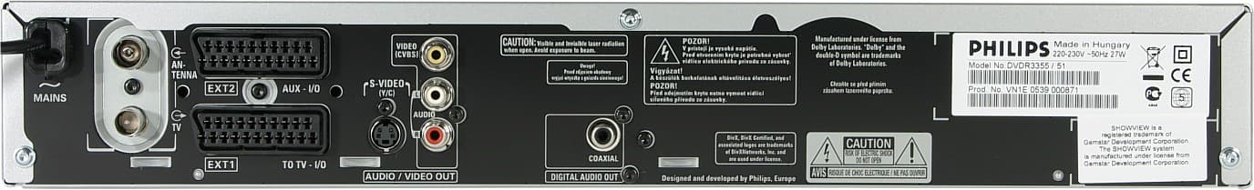 Philips DVDR3355 — мультиформатный DVD-рекордер от известной компании, имеющий характерный скругленный дизайн и обладающий, в общем-то, обычным для такого рода аппаратов набором функций. Внешний вид, марка и перечисленные ниже достоинства могут способствовать выбору этого рекордера, в качестве домашнего устройства для записи видео, особенно если планируется эксплуатировать его в местах с кабельным телевидением или уверенным приемом ТВ-программ.