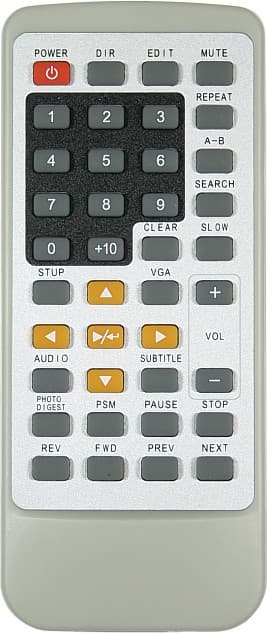 К сожалению, нажимать на кнопки данного пульта неудобно, а найти на ощупь нужную практически невозможно, так как кнопки мелкие, одинаковые и расположены очень тесно стройными рядами. Также осложняет использование пульта по назначению мелкий размер подписей над кнопками. Наверное, следовало бы сократить количество кнопок и переместить ряд их функций в экранное меню. И вообще, может не так уж и нужны цифровые кнопки?