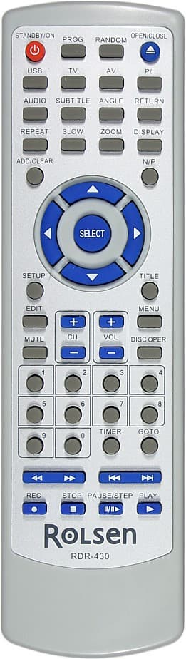 DVD-рекордер Rolsen RDR-430 — самый обычный рекордер на чипсете от LSI Logic, несомненным достоинством которого является наличие USB-интерфейса. Можно указать как минимум три приема, с помощью которых производитель постарался максимально удешевить данный аппарат: отсутствует декодер NICAM, не проигрываются WMA-файлы (и такие дорожки в видеофайлах), нет элемента питания, подпитывающего часы.