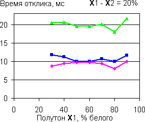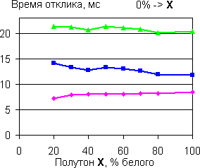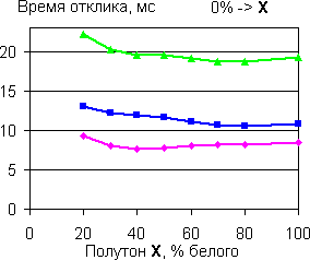| Времена отклика при переходе между полутонами с разницей 20%. | |
