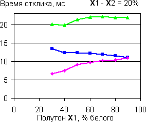 | Времена отклика при переходе от черного до полутона X. | |