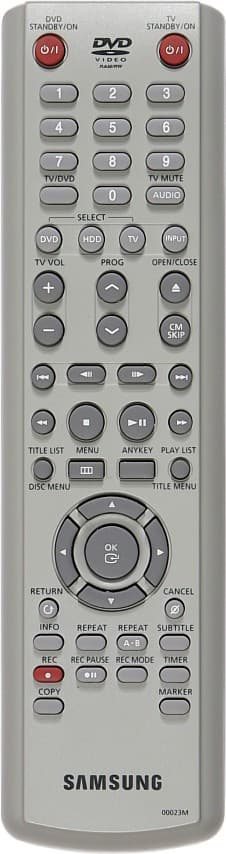 DVD-плееры и рекордеры Samsung имеют унифицированный графический интерфейс и стандартный набор функций, связанных с воспроизведением мультимедийного контента. Характерными признаками являются крупное экранное меню с хорошо читаемым шрифтом без засечек и стиль оформления в целом. Разумеется, между моделями есть и отличия. Так, в этом рекордере мы не обнаружили фирменную функцию EZ VIEW, позволяющую быстро подстроить формат изображения под геометрию устройства отображения, а кнопка ANYKEY стала очень нужной, так как только с ее помощью можно вызвать контекстное меню, открывающее доступ ко многим полезным функциям.