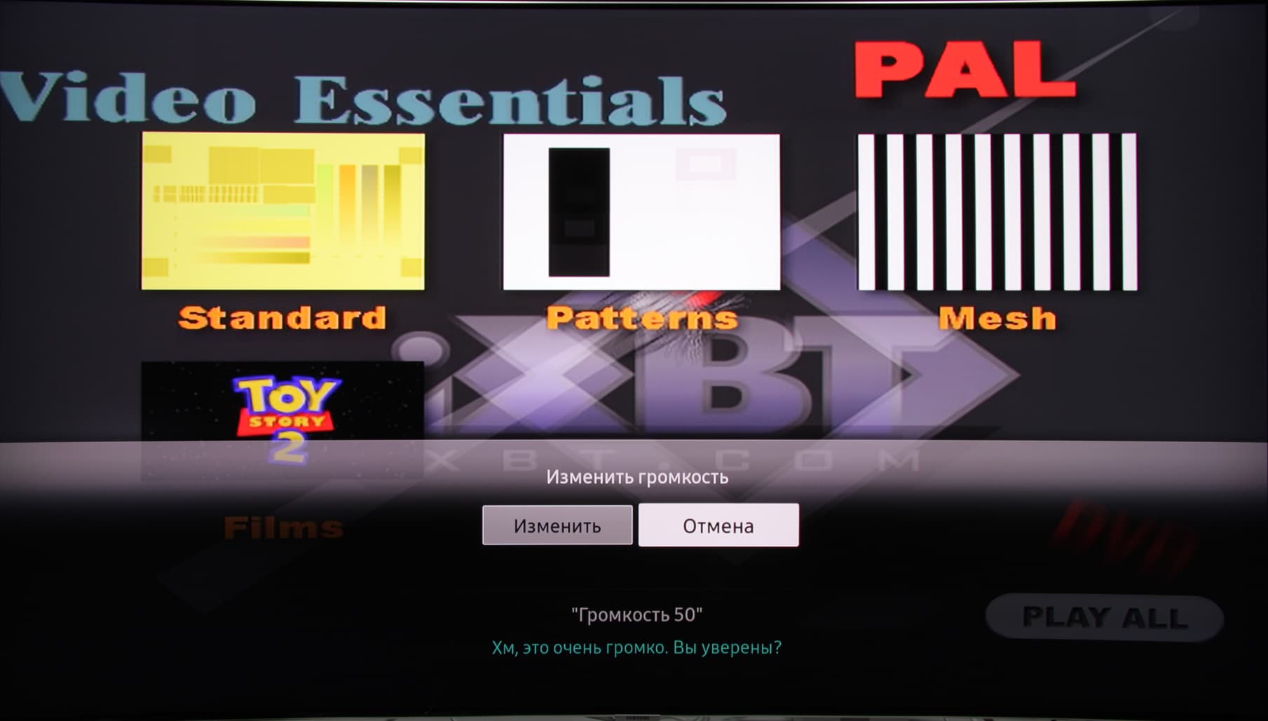 Редко, но попадались видеофайлы, которые телевизор не мог воспроизвести, и, что несколько замедлило тестирование, иногда после таких файлов не воспроизводились и поддерживаемые, приходилось выходить из браузера плеера и запускать его снова. Пофайловые копии DVD и Blu-ray воспроизводятся только по файлам, то есть без меню и прочего. Максимальная поддерживаемая частота кадров для наших тестовых роликов на определение равномерности чередования кадров для 720p, 1080p и 4К (2160p, H.265) составила 60 кадр/с. Тестовые ролики на определение равномерности чередования кадров помогли выявить, что телевизор при воспроизведении видеофайлов подстраивает частоту обновления экрана под частоту кадров в видеофайле, то есть файлы с 24, 25, 30, 50 и 60 кадр/с воспроизводятся идеально, без единого пропуска кадров и с равной длительностью кадров. Максимальный битрейт видеофайлов, при котором еще не было артефактов, при воспроизведении с USB-носителей составил 90 Мбит/с, по проводной сети Ethernet — 70 Мбит/с, а по Wi-Fi — 50 Мбит/с. В последнем случае использовался медиасервер роутера Netgear WNDR3700 и сеть в диапазоне 5 ГГц (a/n, до 300 Мбит/с). Поддерживаются видеофайлы с кодировкой 10 бит на цвет, при этом вывод изображения осуществляется также с высокой битностью, что подтверждают специальные тестовые файлы с градиентами.