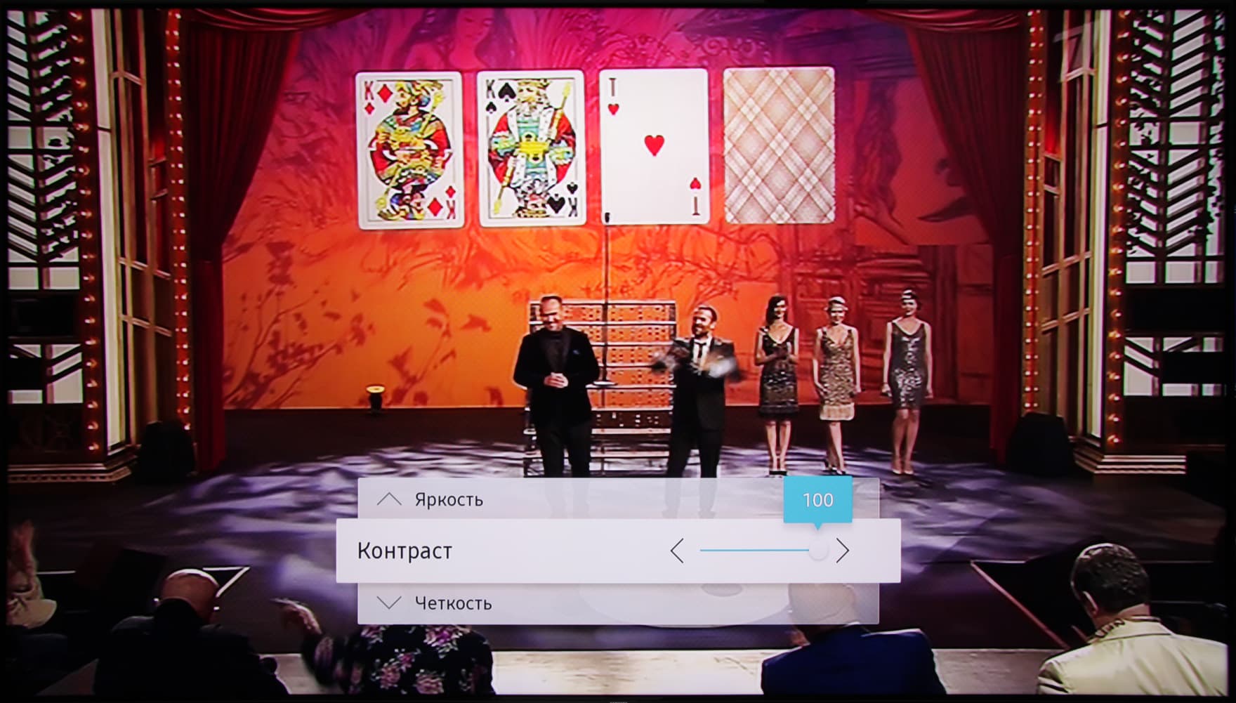 Отметим, что в целом ни к стабильности работы, ни к отзывчивости оболочки у нас никаких претензий не возникло. На команды с пульта ТВ реагирует почти моментально. Несмотря на разнообразную анимацию и звуковые эффекты, навигация по меню быстрая. Вот только возврат из меню с настройками к текущему просмотру выполняется в несколько шагов и через главный экран, ну или мы не разобрались, как это сделать быстро. Меню с настройками ТВ занимает большую часть экрана, надписи в нем читаемые. Есть русифицированный вариант интерфейса. Качество перевода хорошее, и самое главное, что настройки в большинстве случаев меняют именно то, что ожидаешь, исходя из их наименования.