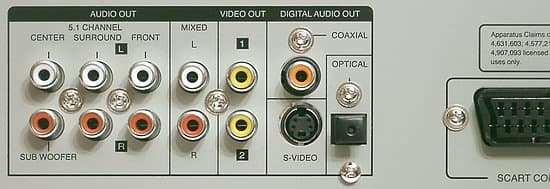 Плеер может быть подключен к устройству отображения через SCART, S-Video и композитный выходы. При этом имеется два параллельно работающих композитных выхода. Для разъема SCART доступно переключение RGB и S-Video сигнала.