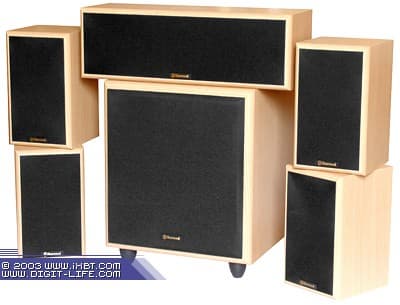 Комплект №3. Набор SP-5000 (центральная колонка, 4 сателита, активный сабвуфер). Этот 5.1-комплект расчитан на совсем небольшие помещения от 10 до 15 м².