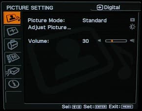 Настройки изображения зачем-то спрятаны в подменю Adjust Picture... на странице PICTURE SETTING.