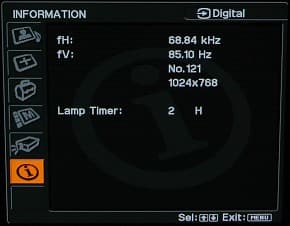 На странице INFORMATION выводятся горизонтальная и вертикальная частоты, номер ячейки памяти, где записан текущий режим и его разрешение.