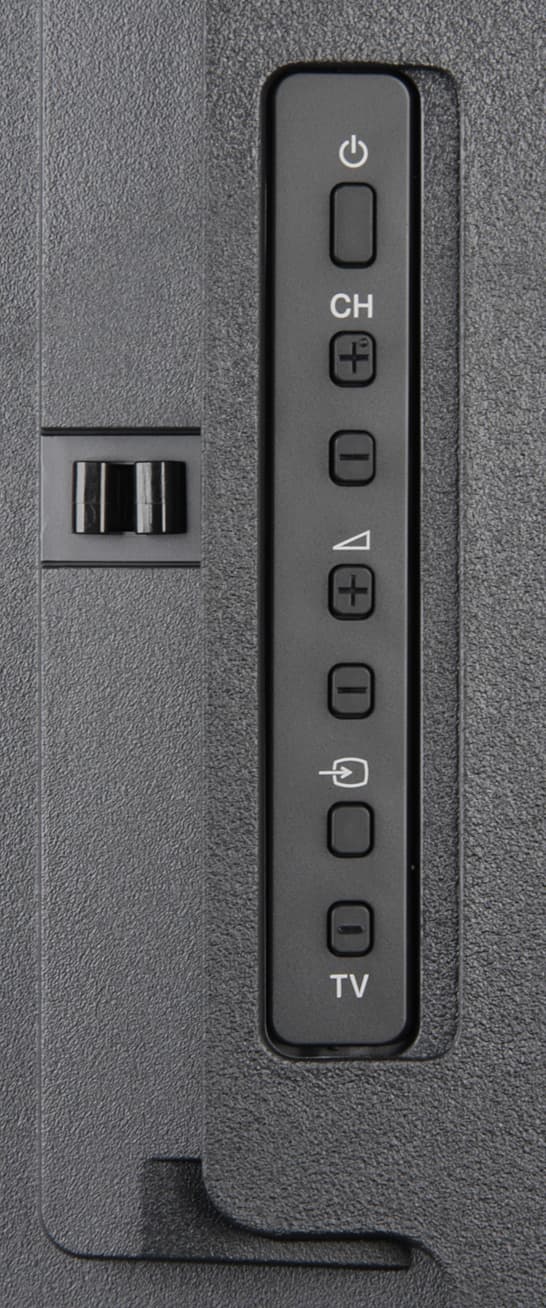 Ближе к левому краю (если смотреть спереди) на задней панели есть несколько кнопок, с помощью которых телевизором можно ограниченно управлять без использования пульта ДУ и других внешних устройств.