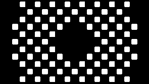 Для ответа на этот вопрос можно попробовать измерять контраст на реальных кадрах, но для повышения метрологических характеристик метода лучше воспользоваться тестовыми модельными шаблонами с различным соотношением площадей белого и черного в кадре. Мы воспользовались шаблонами, предлагаемыми на ветке конференции AVS. Только слегка их модифицировали, убрав черную центральную точку на шаблонах для измерения освещенности белого поля.