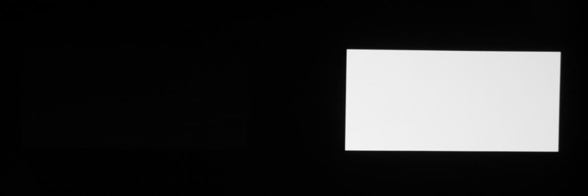 Для тестирования эффективности разделения для глаз мы вывели три тестовых изображения с черным прямоугольником на белом фоне, с белым прямоугольником на черном фоне и со светло-серым прямоугольником на темно-сером фоне. В стереопарах прямоугольники были смещены относительно друг друга, поэтому при просмотре через очки при 100%-ном разделении можно было бы видеть только один прямоугольник. Фотографии ниже сделаны через очки при сигнале 60 кадр/с, при этом экспозиция подбиралась так, чтобы белое поле на фотографиях было максимально ярким, но еще не пересвеченным. Параметр Яркость 3D-очков установлен на высокое и стандартное значение: