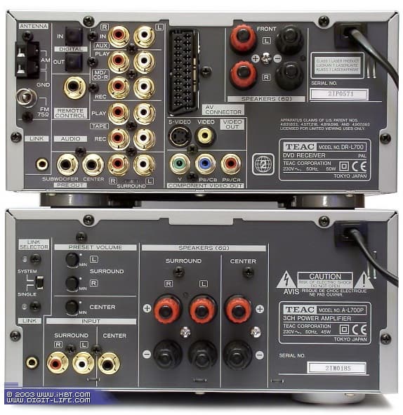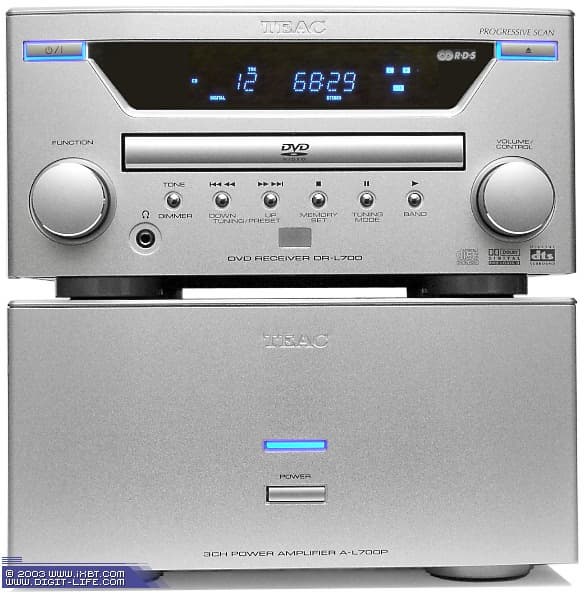 В одной из прошлых статей мы рассказывали про компактный AV-ресивер AG-L800 серии Legacy 800 компании Teac. Продолжая рассказывать о серии компонентов Legacy, мы познакомимся с аппаратами, имеющими индекс 700 в названии. По сути, компоненты Legacy 700 и Legacy 800 очень похожи по конструкции, однако отличаются выходной мощностью усилителей, комплектацией, а также имеют различную компоновку аппаратов. Если компоненты Legacy 800 — это традиционный по компоновке AV-ресивер с пятиканальным усилителем мощности, и DVD-плеер, то Legacy 700 — это аппараты несколько более гибкие в плане конфигурирования системы. В частности, DVD-плеер и AV-ресивер объединены в один корпус, но усилителей мощности здесь всего два — только для фронтальных каналов. Это значит, что для построения стереосистемы понадобиться всего один блок: DVD-ресивер DR-L700. Если же потребуется создать полноценный домашний кинотеатр, то надо будет докупить 3-канальный усилитель мощности (для центра и тыловых каналов) A-L700P, который объединяется командной шиной с основным блоком DVD-ресивера и фактически перестаёт быть отдельным блоком, являясь уже частью системы. Но поскольку наш раздел занимается освещением домашних кинотеатров во всевозможных проявлениях, то говорить мы будем об этих двух аппаратах, как о единой связке.