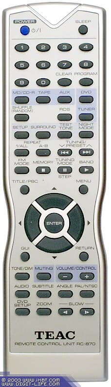 Пульт DVD-ресивера DR-L700 не может похвастаться роскошным сенсорным дисплеем или таким внушительным списком функций, какие есть у пульта AV-ресивера AG-L800, тем не менее всё необходимое тут есть. Пульт этот — системный, то есть возможности программировать или «обучать» его для работы с аппаратами других производителей нет. В данном случае есть возможность управлять только компонентами серии Legacy 700. Управление AV-ресивером и DVD-плеером вынесено в разные зоны пульта. В центре присутствует традиционный «компас» (кнопки навигации и клавиша подтверждения в центре), использующийся как при управлении DVD/CD-плеером, так и при настройке ресивера.