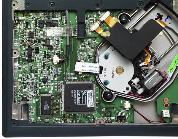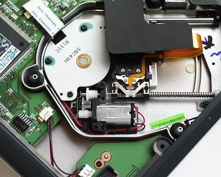 Желающие могут рассмотреть на этом фото особенности механики DVD привода.