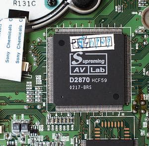 DVD-плеер выполнен на чипсете Supreming D2870, мы не нашли производителя этого чипсета в интернете. Тип применяемых видео и аудио ЦАП остался неизвестным, так как мы не стали снимать плату электроники.