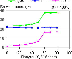 | Времена отклика при переходе между полутонами с разницей 20%. | |