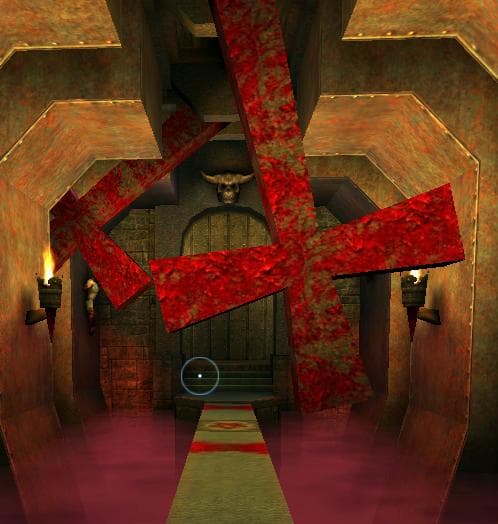 Что мешает попасть в рай? Количество треугольников на экране в секунду. Символов много, и они предъявляют разные требования к ПК, особенно это заметно при использовании эротических символов в FPS. Пошло все с Quake II. На рисунке слева кадр из последнего уровня игры. Налицо попытка создать эротическую сцену. Вот только расценить этот арехетипический символ как эротический вряд ли сможет даже компьютерно-сексуальный маньяк. Скорее, это послание от id Sofware: «Ждите. Мы скоро это реализуем». Квесты уже тогда оперировали эротикой.