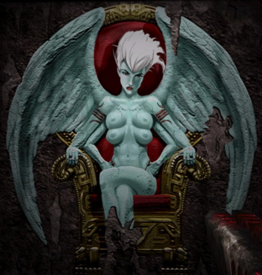 Чтобы полноценно транслировать эротический символ на языке 3D, ПК должен успевать строить его из десятков тысяч треугольников за десятые доли секунды. Ниже этого предела либо несексуальные монстры, либо неподвижные фрески. На рисунке слева (ниже по тексту) кадр из Unreal (уровень «Temple of Vandora»). «Поиграть» с Богиней Света нельзя, на нее можно только смотреть. Более успешная реализация символа — «Daikatana». На рисунке справа (ниже по тексту) один из персонажей (язык не поворачивается назвать его монстром). Эротика здесь не столько в статике, столько в динамике: живое для человека это прежде всего то, что движется как живое (этого совсем нет в более позднем Q3A). Вероятно, идеологическим лидером id Software был все-таки Ромеро, а не Кармак.