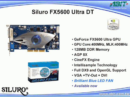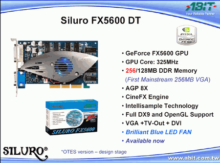 С самыми новыми из серии графических карт на чипах серии NVIDIA GeForce FX 5600/5600 Ultra, читатели наших новостей познакомились неделю назад. Думаю, что в самое ближайшее время эти новинки попадут на исследовательские стенды нашей видео лаборатории. Стоит подчеркнуть, что семейство карт Siluro FX 5600 теперь включает в себя три варианта: Siluro FX 5600 Ultra OTES, Siluro FX5600 Ultra DT и Siluro FX5600 DT, отличающиеся друг от друга не только тактовыми частотами чипов и комплектацией, но также системами охлаждения. Младшая версия, кстати сказать, уже поступила в розницу: