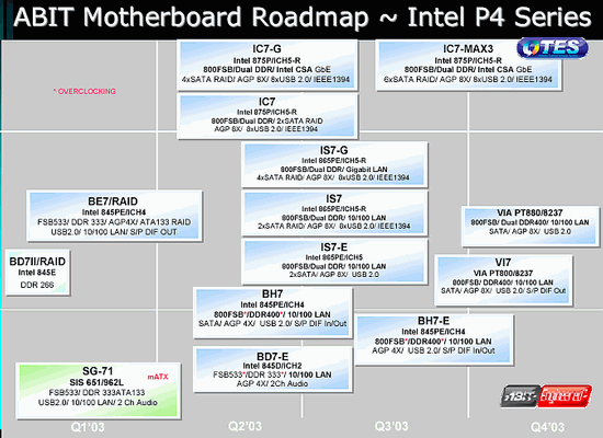 Завершая рассказ о презентации, посвященной системным платам ABIT, нельзя не привести ближайшие планы компании по выпуску новинок для платформы Intel Pentium 4. Как видите, наряду с чипсетами от Intel компания ABIT также планирует активно использовать наборы логики от VIA.