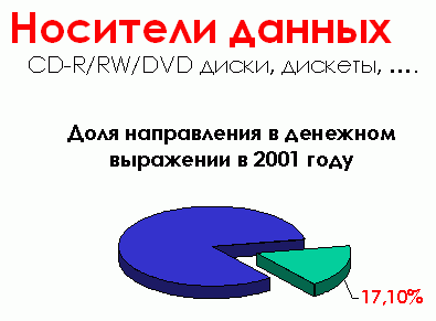 Нельзя обойти вниманием и устройства записи. В 2001 году доля направления в денежном выражении выглядит следующим образом: