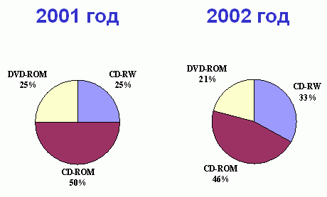 В 2001 году в каждый четвертый компьютер был установлен CD-RW дисковод. В то же время за два года производство CD-RW устройств выросло на 140%, а производство CD-ROM сократилось на 32%.