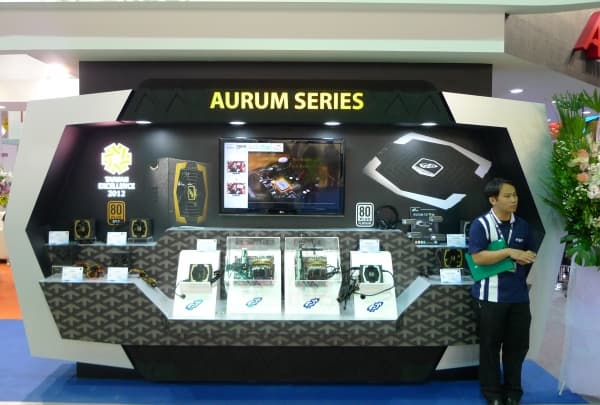 Aurum 80Plus Platinum с КПД более 92% стал второй новинкой, представленной на стенде среди блоков питания. Ранее компания уже заявляла об обладании технологиями для производства блоков питания, соответствующих этому стандарту, и даже прошла сертификацию в качестве производителя, который первым сделал блок с таким высоким уровнем КПД. Однако серийную модель, доступную непосредственно для заказа, компания анонсирует только сейчас. «Конечно, она анонсируется, возможно, с некоторым опозданием, но по заявлению наших менеджеров, эта модель не имеет недостатков и по сути является доведенной до совершенства моделью в своем классе», — комментирует Роман. На сегодняшний день серия представлена тремя моделями мощностью в 450,550 и 650 Вт. Представители компании подчеркивают, что именно блоки такой мощности сложно сделать высокоэффективными. Отметим также, что следующее поколение, соответствующее стандарту 80Plus Titanium, уже проходит тестирования в лабораториях компании.