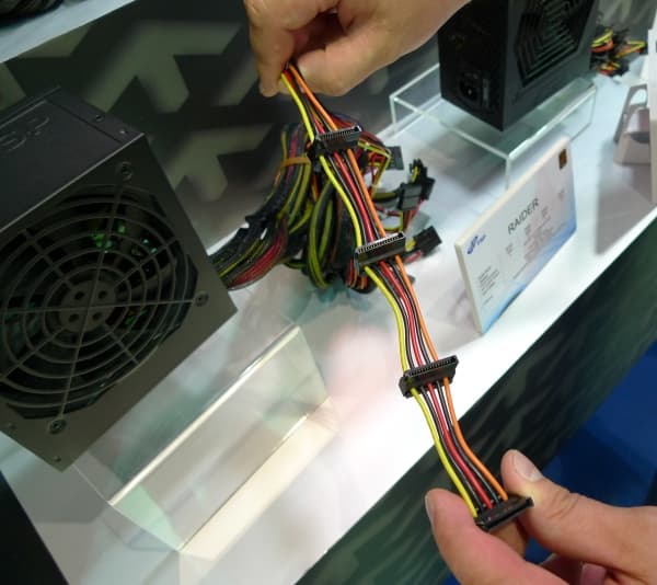 Вторым приятным дополнением и своего рода инновационностью является то, что блок имеет выделенную шину на 12 В. Это позволяет сделать систему более стабильной при работе с максимальной нагрузкой и избежать проседаний в мощности. Так называемый ранжированный кабель питания для SATA-устройств снабжен разъемами, которые расположены на одинаковом расстоянии друг от друга. Считается, что расстояние в 50 мм оптимально для подключения нескольких устройств, установленных в корпусе подряд. Таким кабелем можно подключить одновременно до 4 SATA-устройств, что уменьшает количество кабелей в корпусе.