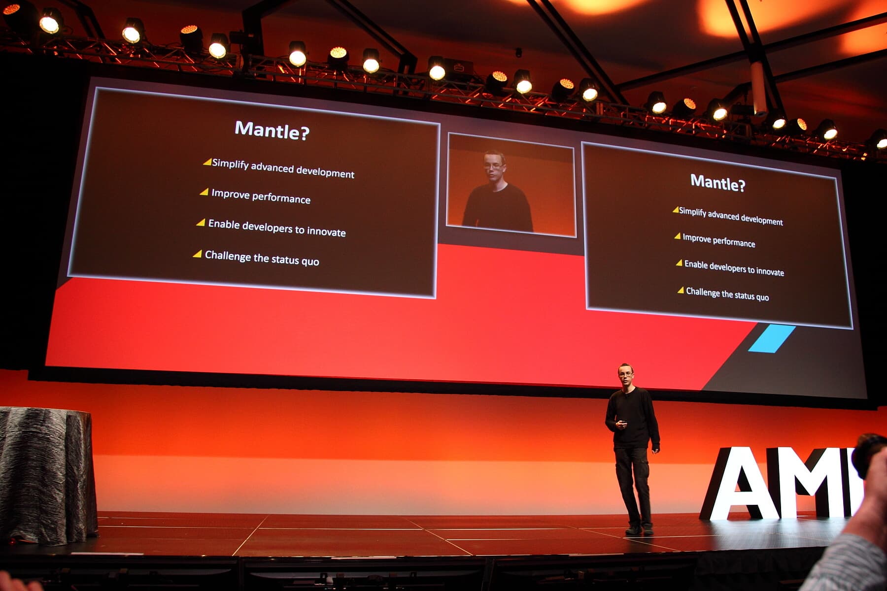 Довольно интересным было выступление Геннадия Ригера — главного ответственного в AMD за разработку Mantle, а также Брайана Беннета, также входящего в состав группы разработчиков нового API. Хотя их рассказ не баловал техническими подробностями, которые многие ожидали от главных разработчиков Mantle, но зато это выступление дало глобальное понимание тех целей, которые компания AMD и Геннадий лично ставят перед собой
