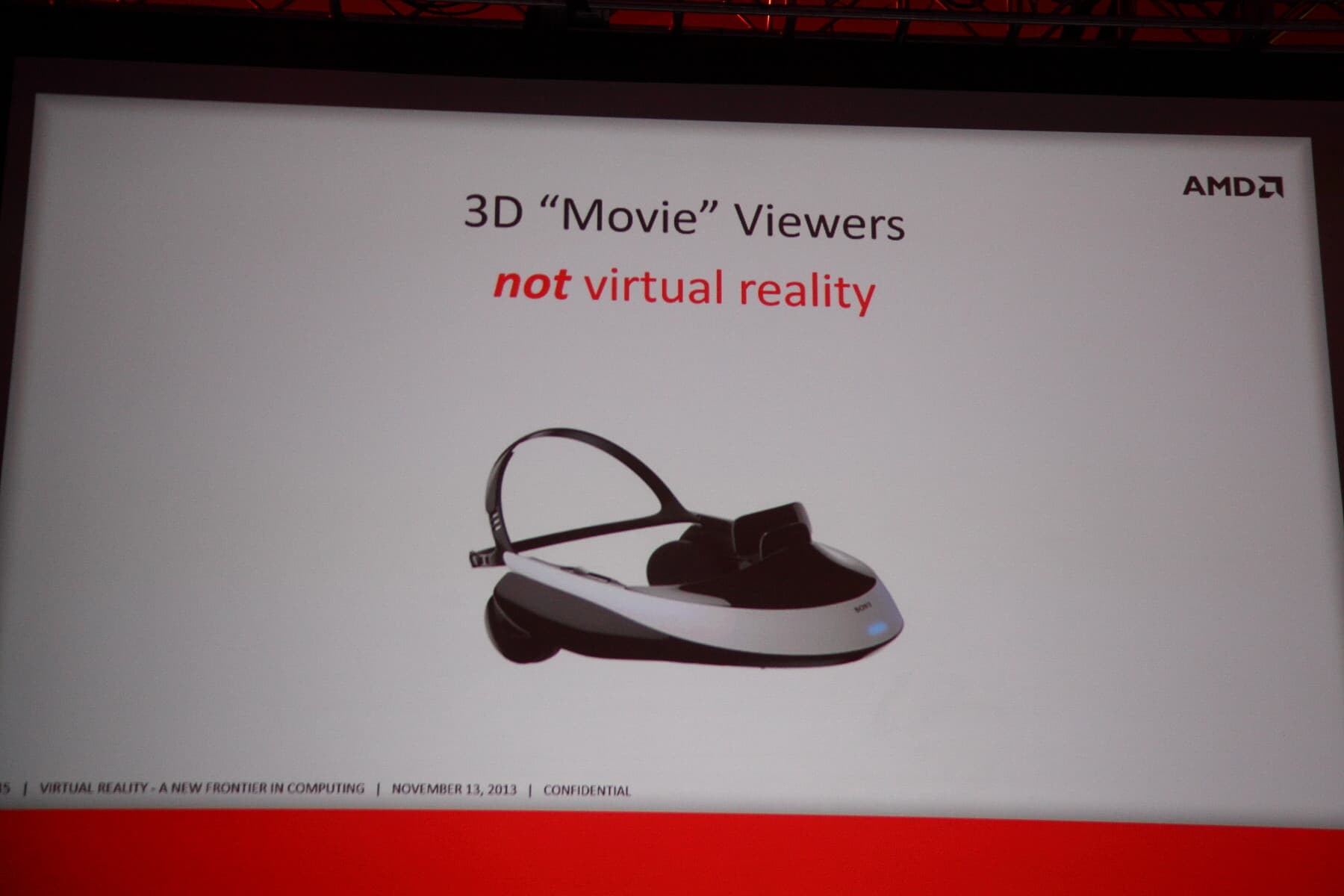 Брендан не мог не развеять неверных представлений некоторых пользователей о том, что шлемы и иные решения других компаний можно также считать виртуальной реальностью. К примеру, 3D-шлемы Sony с OLED-экранами не являются полноценными шлемами виртуальной реальности, так как они не имеют отслеживания движения головой и имеют крайне ограниченный обзор. Поэтому они подходят скорее лишь для просмотра кинофильмов в стереорежиме.