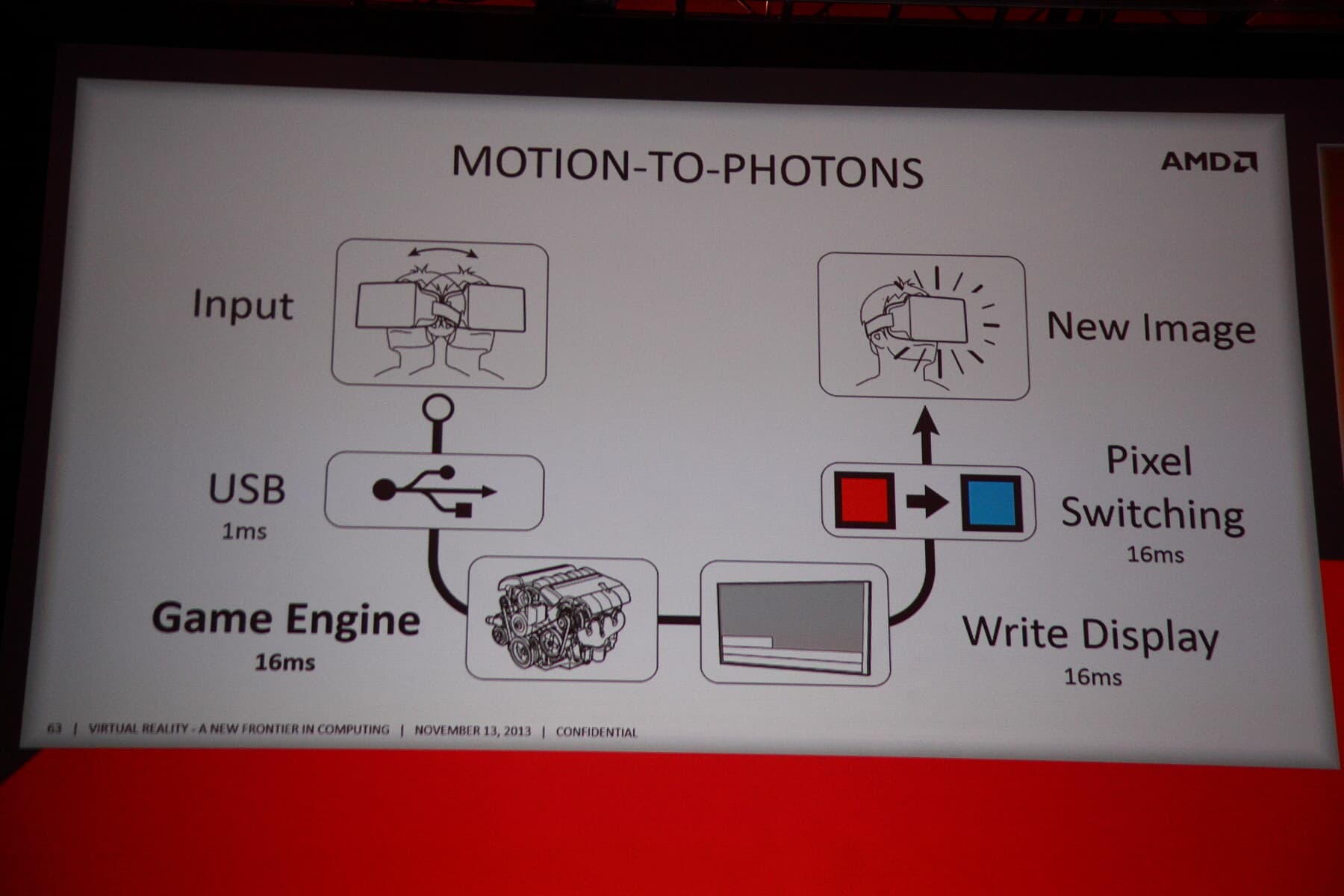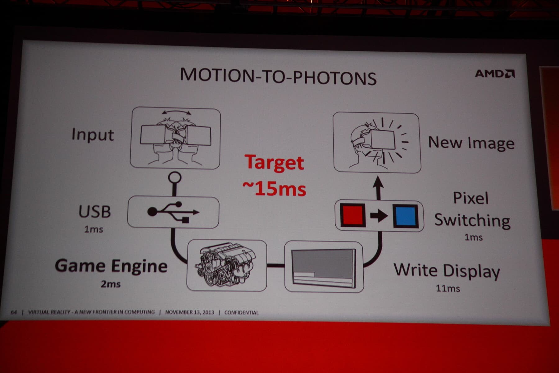 Среди проблем текущих версий Oculus Rift — слишком большие задержки между моментом поворота головы пользователя и отрисовки его на экране. Задержки складываются из множества влияющих вещей, тут и задержки при передаче данных по USB (незначительные), и задержки существующих игровых движков и время переключения цвета пикселей на текущих ЖК-дисплеях...