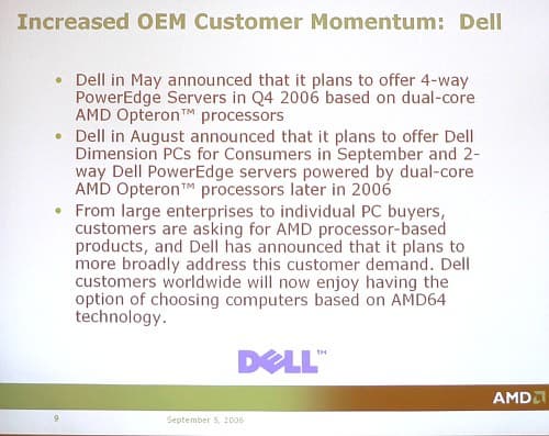 Переход компании Dell на использование процессоров от AMD важен и в плане привлечения еще одного крупного заказчика (особенно, с учетом возможного доведения доли компьютеров Dell на AMD-процессорах до 50%). Но в еще большей степени это, уже давно ожидаемое, событие сейчас важно как «политический» пример для «сомневающихся». Любопытно, что практически в те же сроки активное внедрение Opteron в свою серверную линейку допустила компания IBM. Давний технологический партнер AMD, по некоторым, уже не имеющим значения, причинам, в сегменте многопроцессорных серверов оставался верным Intel.