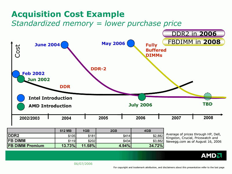 Между прочим, переход на модули FBDIMM, так успешно «подогревающие» сегодня лишь сервера на процессорах последнего поколения от Intel, конечно, состоится и на AMD-платформе. Но только в 2008 году, когда они подешевеют и, надо полагать, будут отличаться от DDR2, по меньшей мере, не худшими характеристиками.