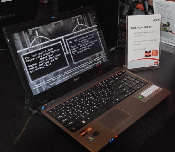 Такой же экран — у модели Acer Aspire 5560G. Однако графическая подсистема у нее дополнена дискретным процессором и имеет обозначение AMD Radeon HD 6740G2 Dual Graphics.