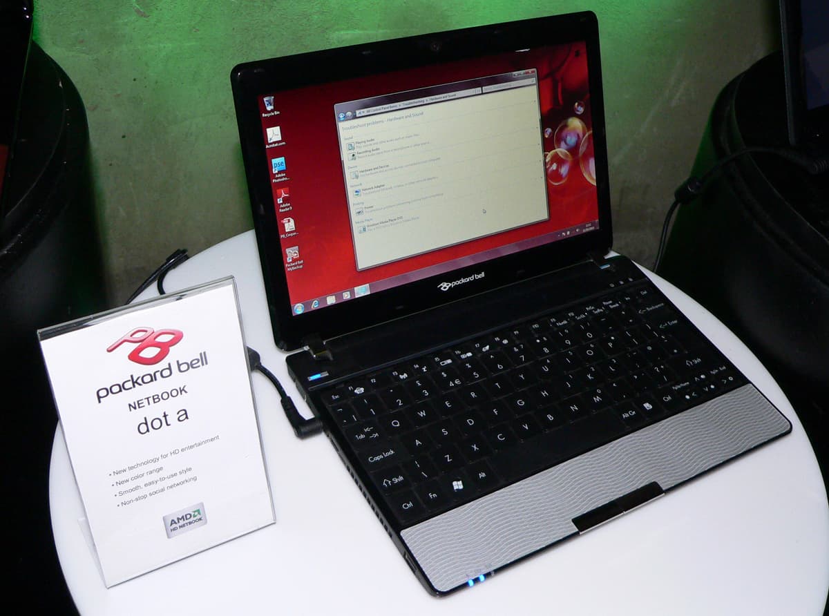 Вот, кстати, и за примерами далеко ходить не надо. Действительно внешне более привлекательный нетбук Packard Bell dot a с 10-дюймовым экраном и несколькими вариантами цветового оформления корпуса будет являться аналогом Acer Aspire One 521 в черном корпусе. В обоих случаях внутри одноядерный Athlon II Neo K125, однако декодирование HD-видео заявлено и очевидно будет осуществляться силами графического ядра в чисете под названием Radeon HD 4225.
