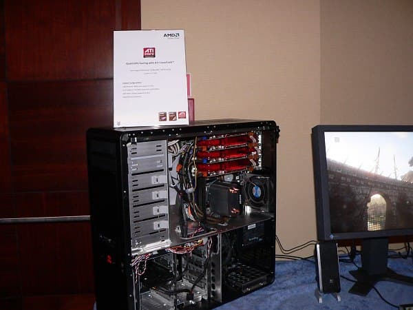 Но кое-что, пожалуй, следует отметить сразу. В частности, закономерный интерес представляет работа четырех видеокарт в режиме CrossFire. Включается такой режим в драйверах, как и для двух карт, и принципиально работоспособен. Однако, как признают в самой AMD, с текущей версией Catalyst обнаружить ускорение возможно лишь в считанном числе игр, а для демонстрации самого режима были выбраны игра Call of Juarez и пакет 3DMark06. Как обещают, практическую пользу из данного режима в широком спектре игр можно будет извлечь лишь через месяц, с выпуском Catalyst 7.12.