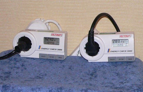 А это стенд с демонстрацией потребляемой мощности для двух CrossFire-систем в следующих конфигурациях: Athlon 64 X2 6400+ и пара Radeon HD 2900 XT (слева) и Phenom 2,4 ГГц с парой Radeon HD 3850 (справа). Запускаем 3DMark06 и видим весьма солидную разницу. В первую очередь, проявляется преимущество 55 нм техпроцесса для GPU на видеокартах, вклад которых в общее потребление, в данном случае, максимальный.