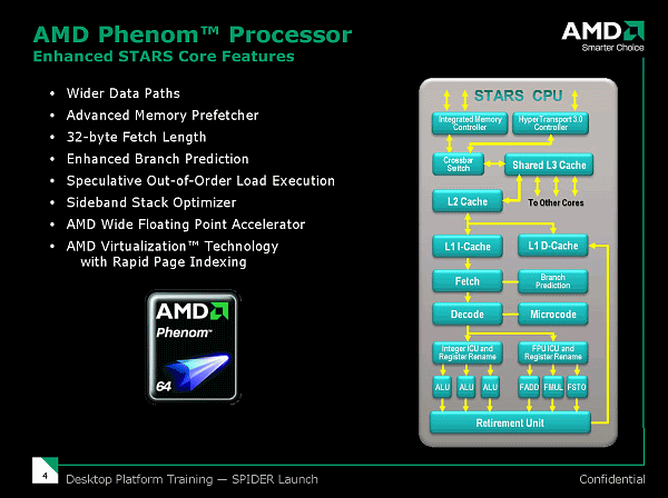Помимо возможности тестирования, на второй день были назначены технические сессии, на которых можно было подробно ознакомиться с каждым из компонентов платформы. Наши постоянные читатели, разумеется, уже знают, какие нововведения были запланированы для реализации в процессорах Phenom. Давайте посмотрим, что реализовано в результате.