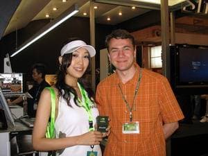 В продолжение разговора о девушках на выставке. Компания NVIDIA, не имеющая в этот раз своего отдельного большого стенда, устроила акцию по раздаче определенных карточек (у них это было названо как Покер). Подробно объяснять нет смысла, но суть в том, что надо собрать как можно больше карточек от каждого партнера NVIDIA с разными картинками. Для этой цели повсеместно были расставлены девушки, раздающие таковые всем желаюшим (к концу выставки у нас у каждого на шее болталось по внушительной колоде данных карточек). Разумеется, сия акция расчитана на китайцев с их скурпулезным хождением по всем партнерам в определенное время и сбору всех карточек с разными картинками. Нам, европейцам, конечно же, уже после собирания четвертого десятка карточек становится скучно, и мы бросаем это занятие (а только партнеров там штук 20, плюс у каждого картинок 10 видов).