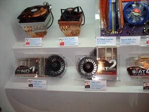 В заключении рассмотрения этого стенда надо показать и особую серию ускорителей, оснащенных особыми кулерами (сами устройства охлаждения, насколько нам стало известно, производства Coolermaster).