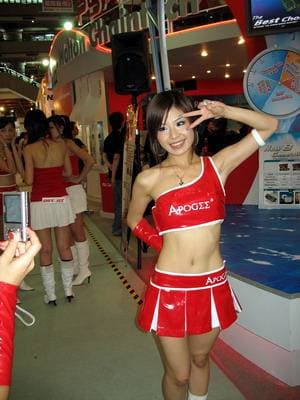 Пока остальные сотрудники осматривали разные интересные экспонаты, фотографировались с многочисленными фото-моделями местного разлива и беседовали с представителями той или иной компании, редактор 3D-Video тихо посетил стенд GeCube, который был в традиционно красных красках. Разумеется все потому, что производит исключительно видеокарты на базе красно-белых процессоров ATI (сейчас AMD). Почти все новые карты оснащены фирменным кулером от GeCube, который компания использует уже года 2 или 3. Впрочем, устройство действительно хорошее и эффективное.
