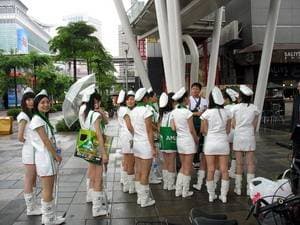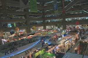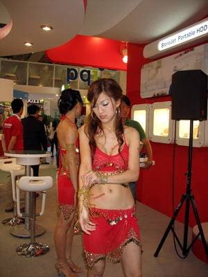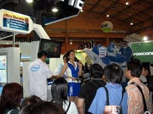 | В первом павильоне можно увидеть не только оригинально одетых девушек, но и стенды как грандов и монстров, так и компаний, не очень широко известных за пределами Тайваня. | ![]() |